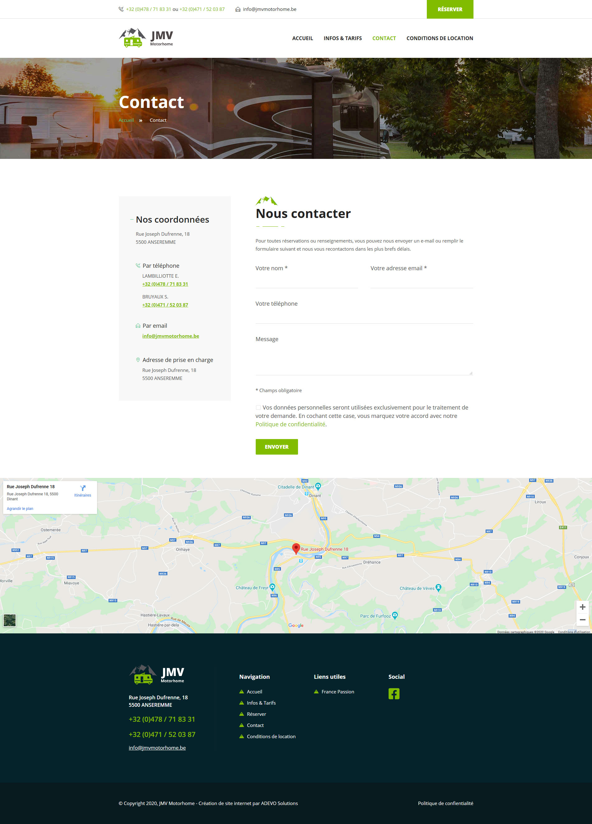 Réalisation d'un site internet présentant l'activité, le motorhome et ses caractéristiques ainsi que les tarifs.